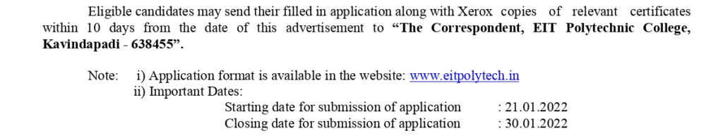 The Correspondent, EIT Polytechnic College, Kavindapadi – 638 455.