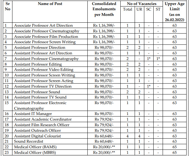 - Degree from a recognized University or equivalent; At least 8 years’ professional experience including teaching in Film/ TV production in an organization or institute of repute.