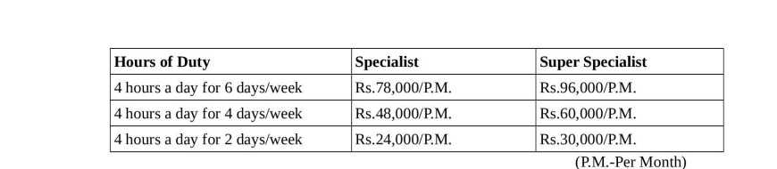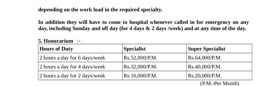 Specialist – Post-Graduate degree from a recognized University. Minimum 2 years experience in the professional work related to concerned Specialty after obtaining P.G.degree.