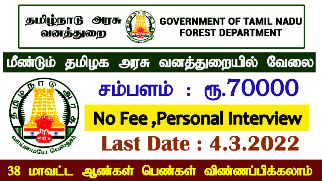 தமிழ்நாடு அரசு வனத்துறை வேலைவாய்ப்பு 2022, Tamilnadu Forest Department Recruitment 2022