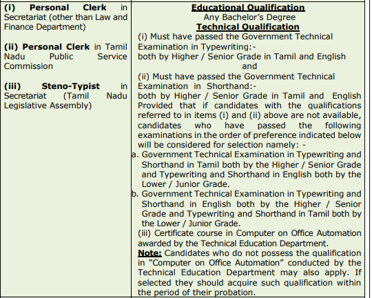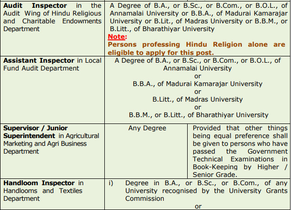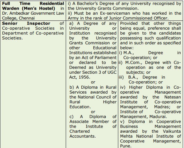 Name of the Post | Minimum Age limit (For all) | “Others” [i.e., Applicants not belonging to SCs, SC(A)s, STs, MBCs/DCs, BC(OBCMs) and BCMs] Maximum Age Limit | Scheduled Caste / Scheduled Caste (Arunthathiyars), Scheduled Tribes, Most Backward Classes / Denotified Communities, Backward Classes (OBCMs), Backward Classes (Muslims) and Destitute Widows of all categories. Maximum Age Limit |