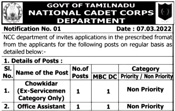 Ex-Servicemen belonging to SC/ST/BC/MBC : 18-Must not have completed 53 years