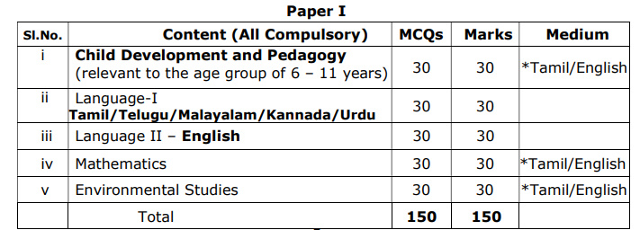 Date of Examination TNTET – Paper I : will be announced later