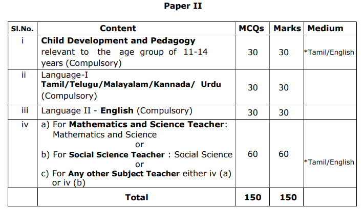 Date of Examination TNTET – Paper II : will be announced later