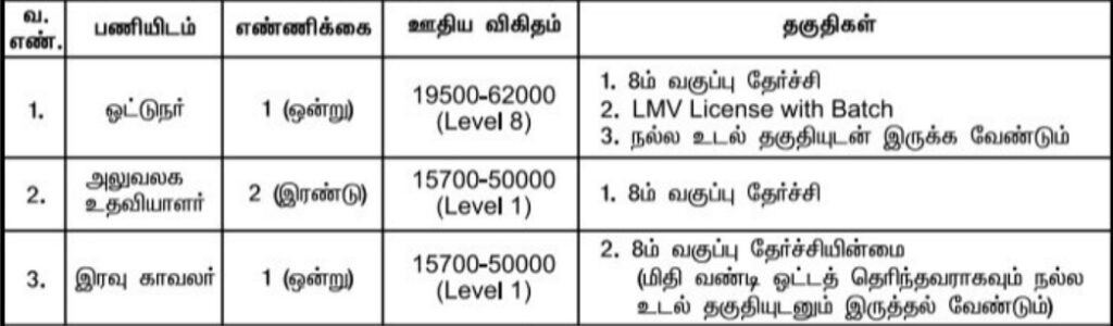 காஞ்சிபுரம், இந்து சமய அறநிலையத் துறை , இணை ஆணையர் அலுவலகத்தில் காலியாக உள்ள அலுவலக உதவியாளர் வேலை, ஓட்டுநர் மற்றும் இரவுக்காவலர் பதவிகள் அறிவிப்பு