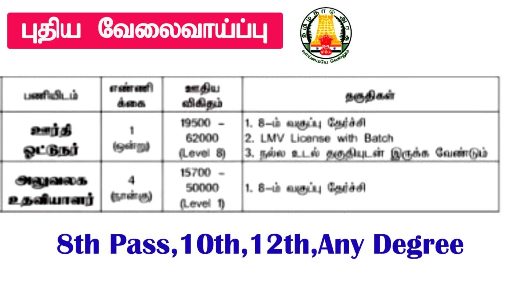 தமிழ்நாடு அரசு , இந்து சமய அறநிலையத்துறை , உதவி ஆணையர் அலுவலகத்தில் அலுவலக உதவியாளர் மற்றும் ஊர்தி ஓட்டுநர் வேலைவாய்ப்பு