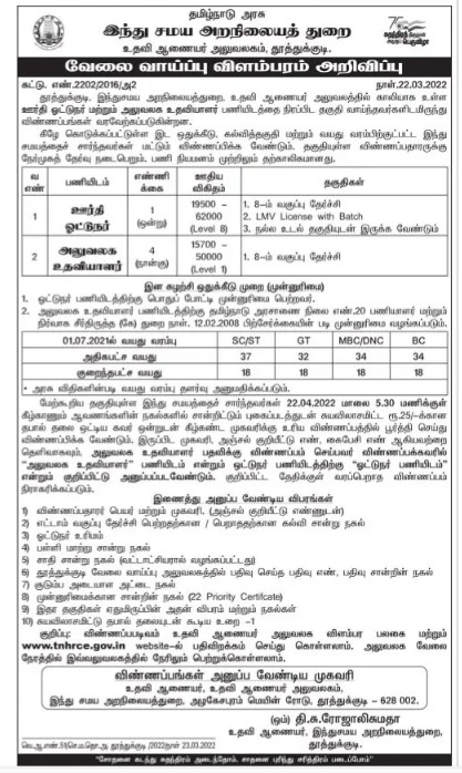 விண்ணப்பிக்க வேண்டிய கடைசி தேதி : 22.4.2022