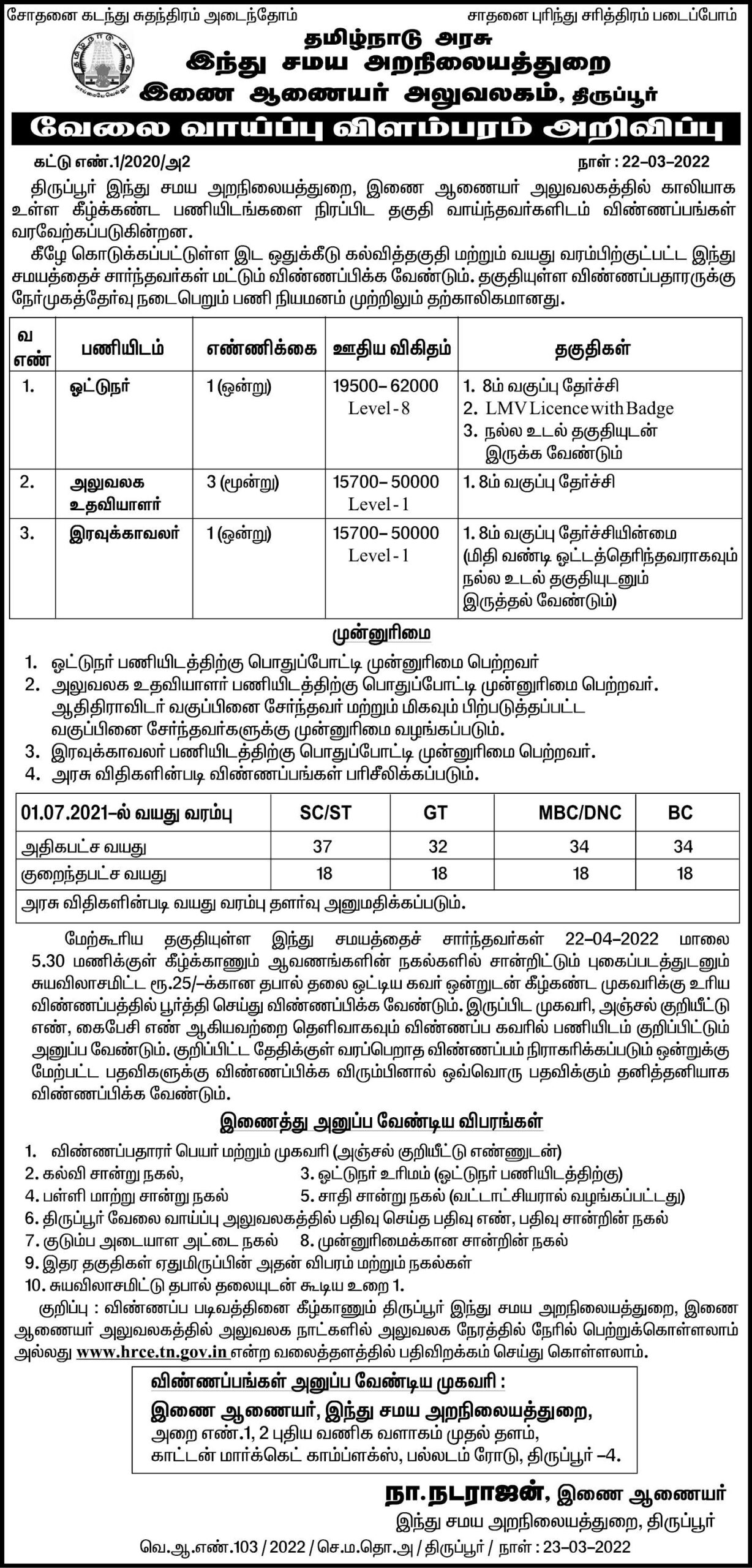 தமிழ்நாடு அரசு, இந்து சமய அறநிலையத்துறை , இணை ஆணையர் அலுவலகம் , திருப்பூர்