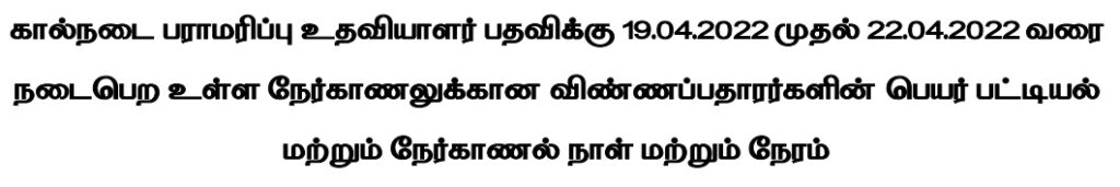 நேர்காணல் நடைபெறும் நாட்கள் : 19.04.2022 முதல் 22.04.2022 வரை
