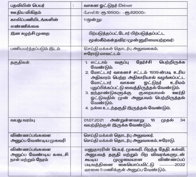 Information and Public Relation Officer office Erode Recruitment 2022 Click here