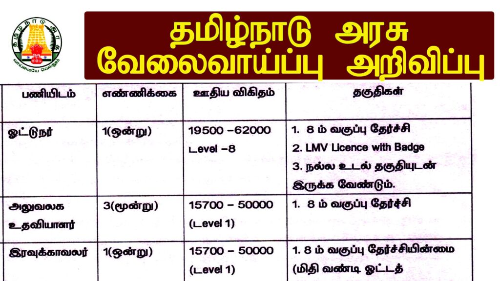 திருப்பூர், இந்து சமய அறநிலையத் துறை , இணை ஆணையர் அலுவலகத்தில் காலியாக உள்ள அலுவலக உதவியாளர் வேலை, ஓட்டுநர் மற்றும் இரவுக்காவலர் பதவிகள் அறிவிப்பு