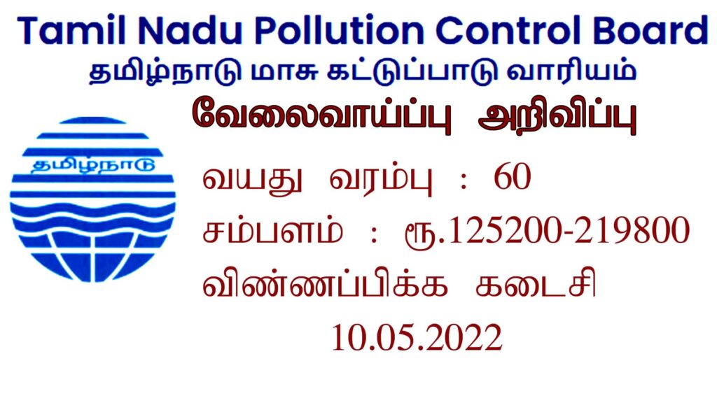 தமிழ்நாடு மாசு கட்டுப்பாடு வாரியம் வேலைவாய்ப்பு அறிவிப்பு