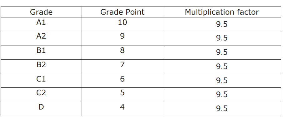 the marks will be arrived at by multiplying the CGPA by 9.5. Where