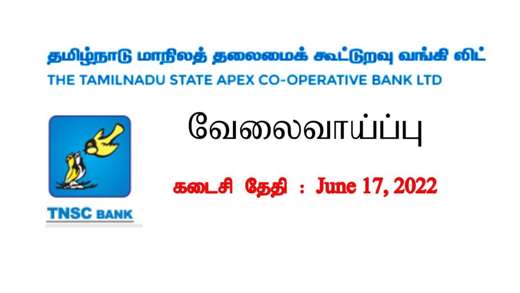 தமிழ்நாடு மாநிலத் தலைமைக் கூட்டுறவு வங்கி லிட் வேலைவாய்ப்பு அறிவிப்பு