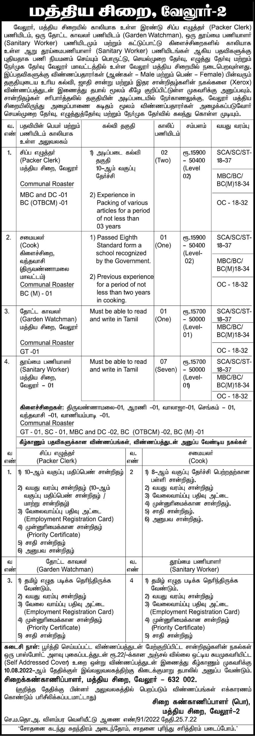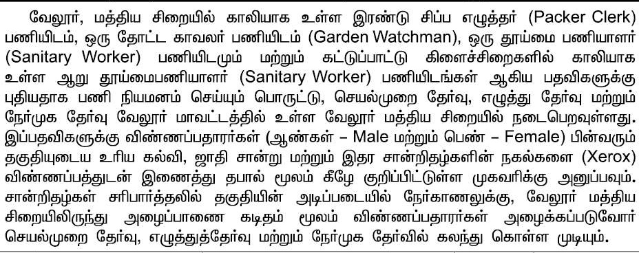 Garden Watchman | 1 Post | Salary Rs.15700-50000 | Must be able to read and write in Tamil |