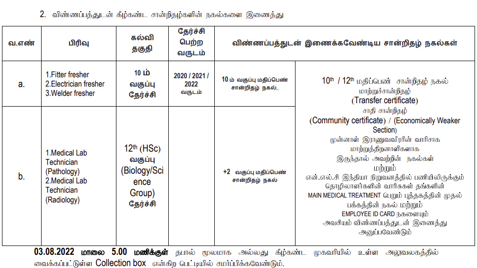 ON LINE REGISTRATION FORM பிரிண்ட் எடுத்து தேவையான சான்றிதழ்களின் நகல்கள் இணைத்து சமர்ப்பிக்க வேண்டிய கடைசி நாள் : 3.8.2022