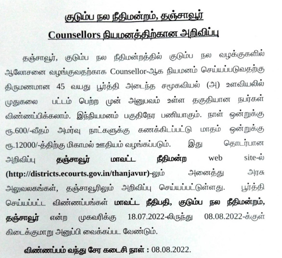 குடும்ப நல நீதிமன்றம் வேலைவாய்ப்பு