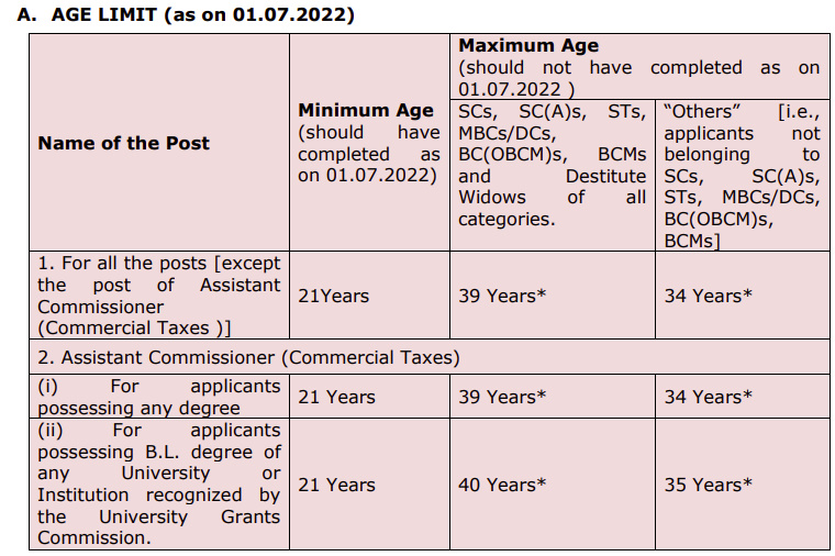AGE LIMIT (as on 01.07.2022):-
