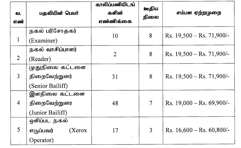 (iii) Senior Bailiff, (iv) Junior Bailiff and (v) Xerox Operator in the Subordinate