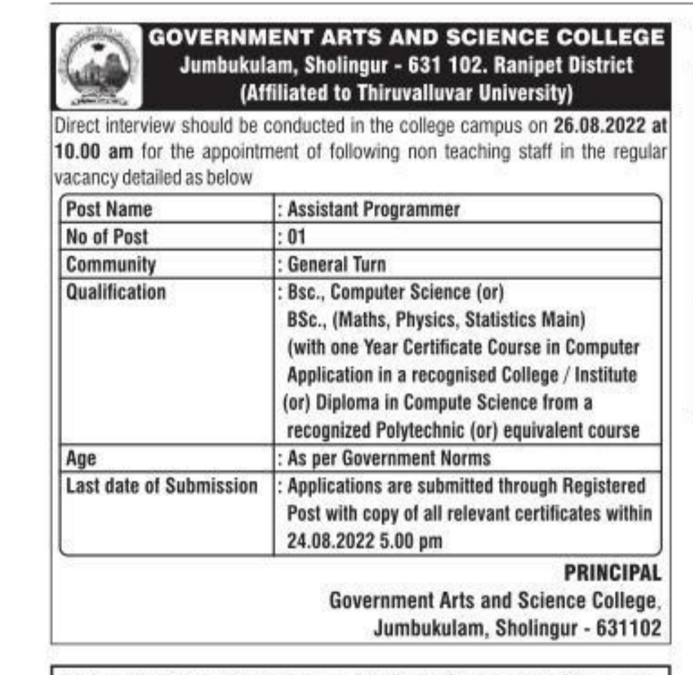 Government Arts and Science College Recruitment 2022 Click here