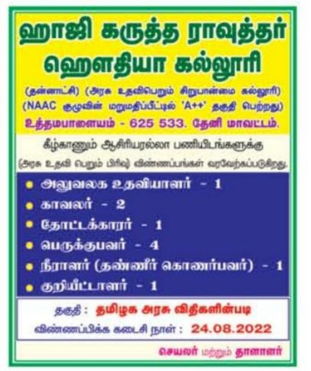 Hajee Karutha Rowther Howdia College Recruitment 2022 Click here