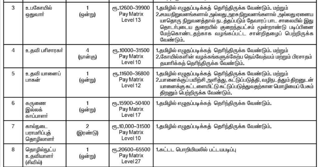தமிழ்நாடு அரசு இந்து சமய அறநிலையத்துறை வேலைவாய்ப்பு அறிவிப்பு