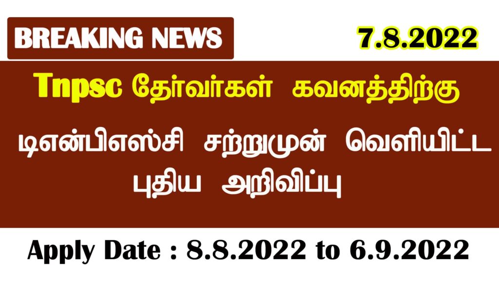 Organization Name: Tamil Nadu Public Service Commission Job Category: Tamil Nadu Govt Jobs Employment Type: Permanent Jobs Post Name Forest Apprentice No of Posts 10 Application Start 8.8.2022 Last Date 6.9.2022 Apply Mode Online Official Website : https://www.tnpsc.gov.in/