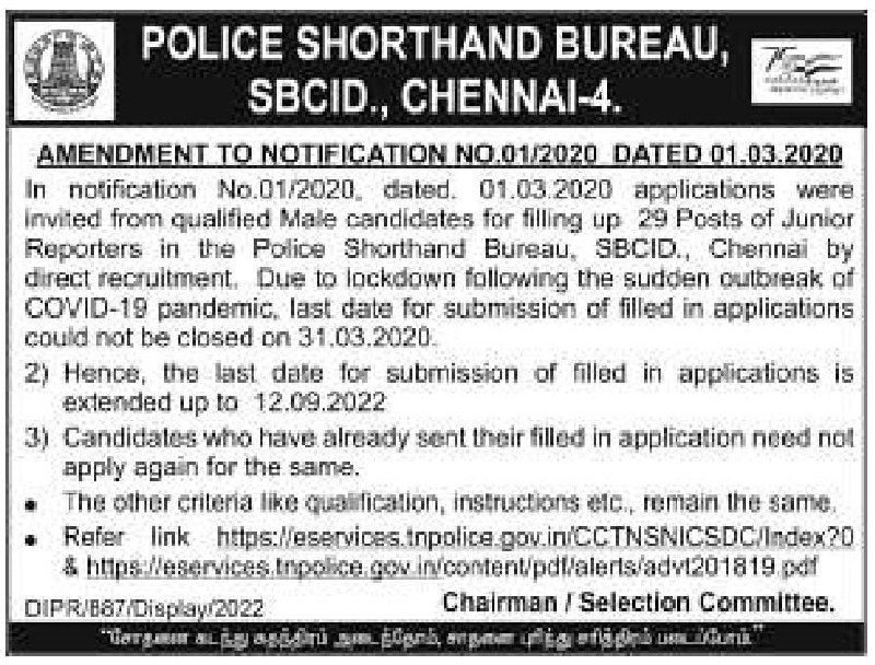 Police Shorthand Bureau SBCID Recruitment 2022 Click here