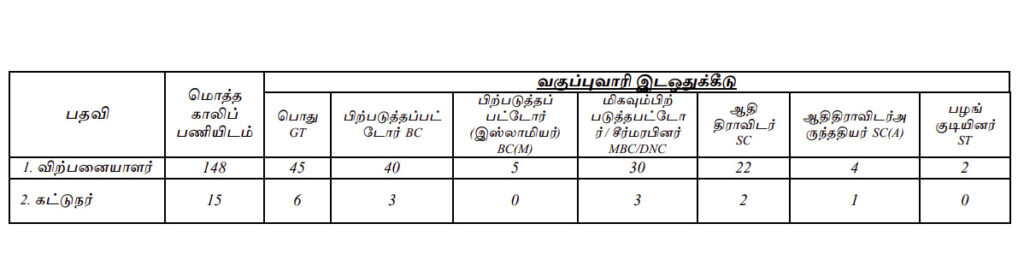 மதுரை மாவட்டத்தில் கூட்டுறவு சங்கங்களின் பதிவாளர் கட்டுப்பாட்டில் உள்ள கூட்டுறவு சங்கங்களால் நடத்தப்படும் நியாயவிலை கடைகளுக்கு விற்பனையாளர்கள் மற்றும் கட்டுநர்கள் பதவிகளுக்கு நேரடி நியமனம் செய்வதற்கான விண்ணப்பங்கள் தகுதி வாய்ந்த விண்ணப்பதாரர் களிடமிருந்து https://drbmadurai.netஎன்ற இணையதளம் வழியாக ஆன்லைன் மூலம் மட்டுமே 14/11/2022 அன்று பிற்பகல் 5.45 மணி வரை வரவேற்கப்படுகின்றன.