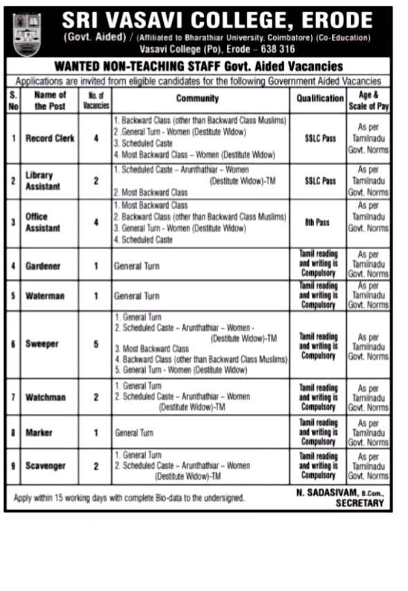 Age and Scale of Pay : As per Tamilnadu Govt Norms.