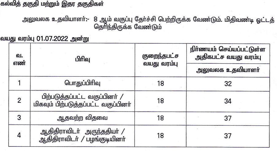 அலுவலக உதவியாளர் காலி பணியிடங்களுக்கு நேரடி நியமனம்.