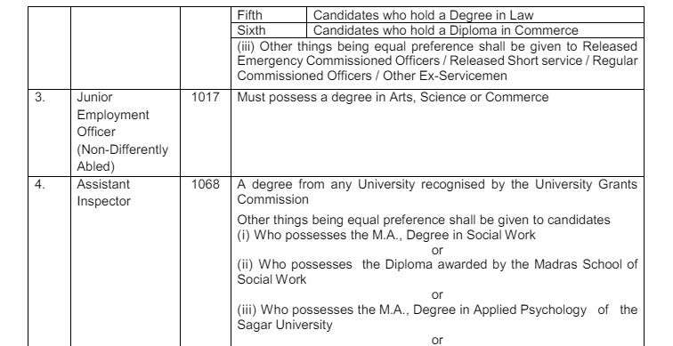 | 7. | Junior Employment Officer (Non-Differently Abled) | 1017 | |||||