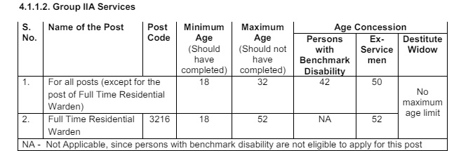 | NA – Not Applicable, since persons with benchmark disability are not eligible to apply for this post | |||||||